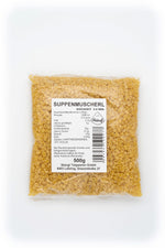 Unsere Suppenmuscherl sind die perfekte Ergänzung für jede Suppe. Diese kleinen, muschelförmigen Nudeln machen jede Mahlzeit zu einem Vergnügen, besonders für Kinder. Hergestellt aus hochwertigen Zutaten, einschließlich 10% Ei, sind sie nicht nur lecker, sondern auch nahrhaft.